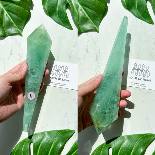 Large Rainbow Fluorite Wand/Natural Rainbow Green Fluorite Wand/Fluorite Point Wand/Crystal Wand/Fluorite Handle/Fluorite Stem/Heart Chakra Healing/AAA