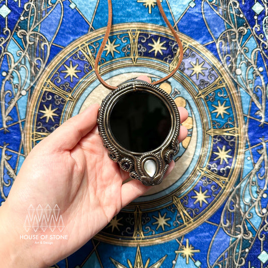 Handmade Natural Black Obsidian Pendant Necklace/Magic Obsidian Mirror Crystal Pendant/Scrying Mirror Protection Jewelry/Altar Tool