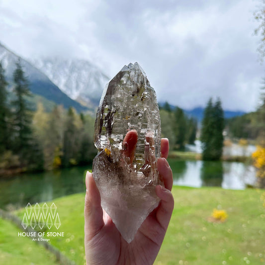 Natural Clear Quartz Point Wand/Clear Quartz Rainbow Crystal Wand/Clear Quartz Handle/Crystal Stem/Crown Chakra Healing/Meditation Tool/AAA