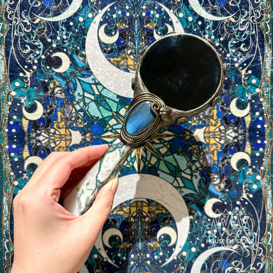 Handmade Natural Black Obsidian Mirror/Magic Obsidian Witch Wand/Crystal Quartz Wand/Scrying Mirror Wand/Root Chakra/Manifest Altar Tool
