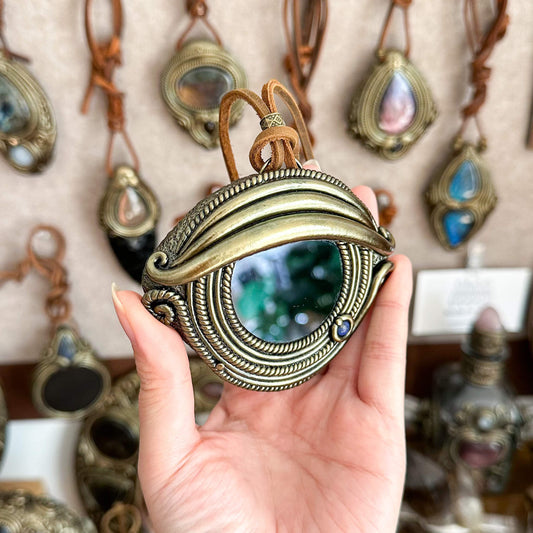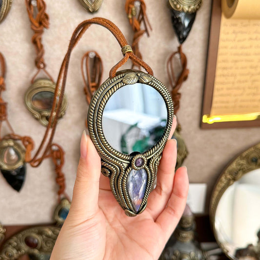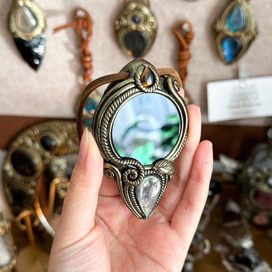 Natural Handmade Crystal Mirror/Magic Crystal Witch Mirror/Labradorite Mirror/Crystal Quartz Mirror/Chakra Healing/Manifest Altar Tool