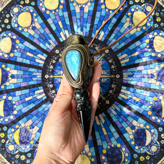 Handmade Natural Gold Obsidian Pendant Necklace/Magic Black Obsidian Crystal Protection Pendant/Labradorite Jewelry/RootChakra/Altar Tool