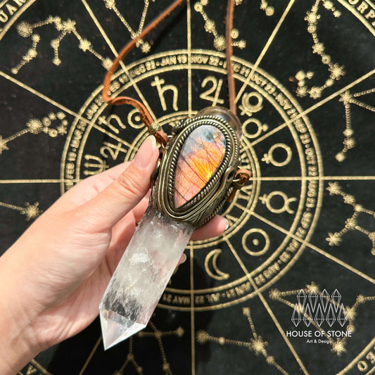 Handmade Natural Clear Quartz Pendant Necklace/Magic Smoky Quartz Crystal Protection Pendant/Obsidian Labradorite Jewelry/Chakra/Altar Tool