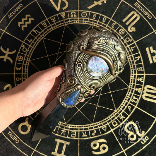 Handmade Natural Crystal Amethyst Antler Wand/Magic Smoky Quartz Witch Wand/Labradorite Amethyst Ammonite Antler Stem/Chakra/Altar Tool