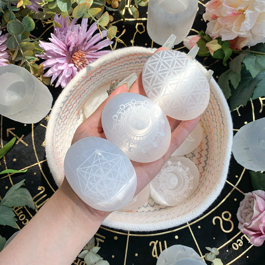 Etched Selenite Crystal palm Stone/Selenite Crystal Tumbled Stone/Etched Selenite Stone
