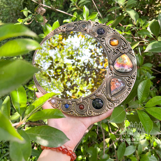 Natural Handmade Crystal Mirror/Magic Crystal Witch Mirror/Labradorite Mirror/Crystal Quartz Mirror/Chakra Healing/Manifest Altar Tool