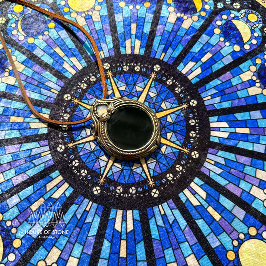 Natural Handmade Black Obsidian Pendant Necklace/Magic Black Tourmaline Mirror Crystal Pendant/Scrying Mirror Amethyst Jewelry/Chakra/Altar Tool