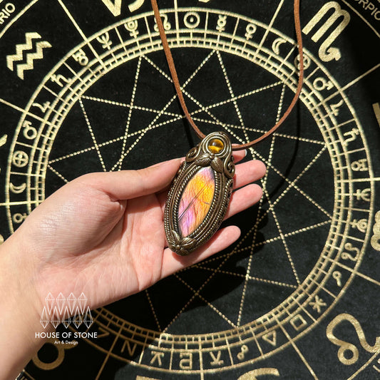 Natural Handmade Labradorite Pendant Necklace/Magic Labradorite Carnelian Crystal Double-sided Pendant/Labradorite Jewelry/Chakra/Altar Tool