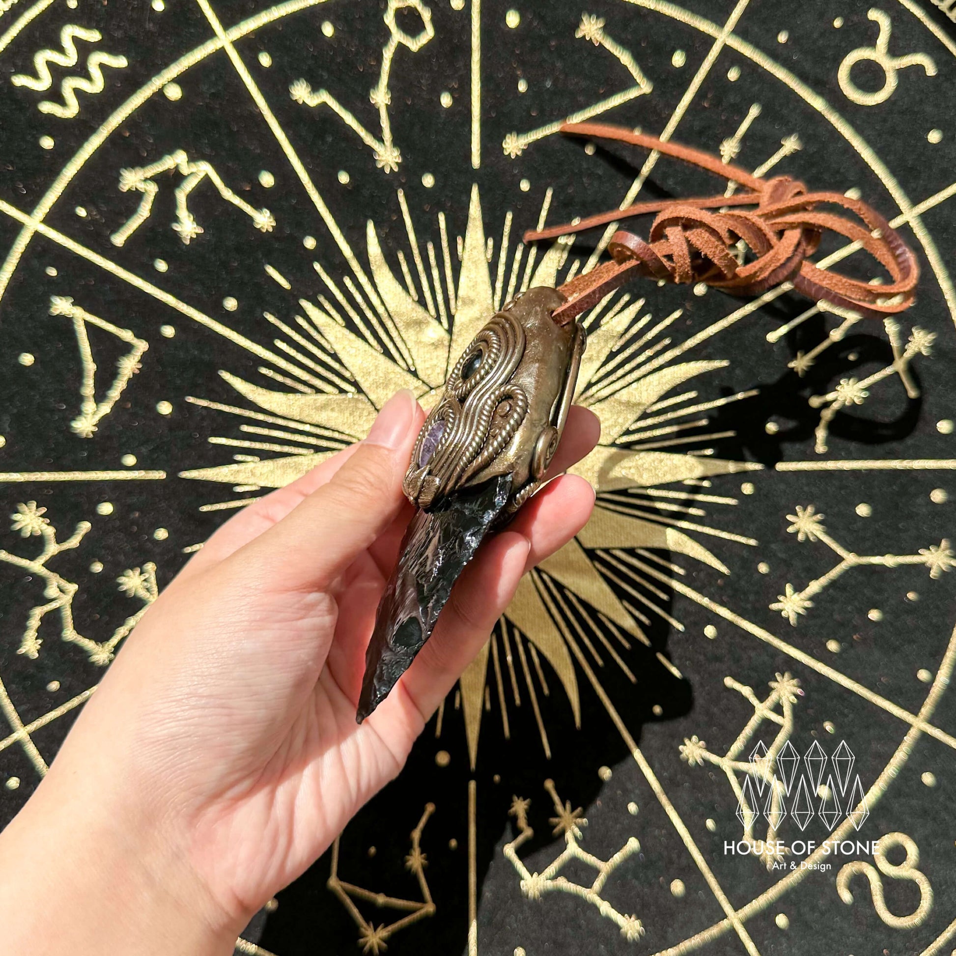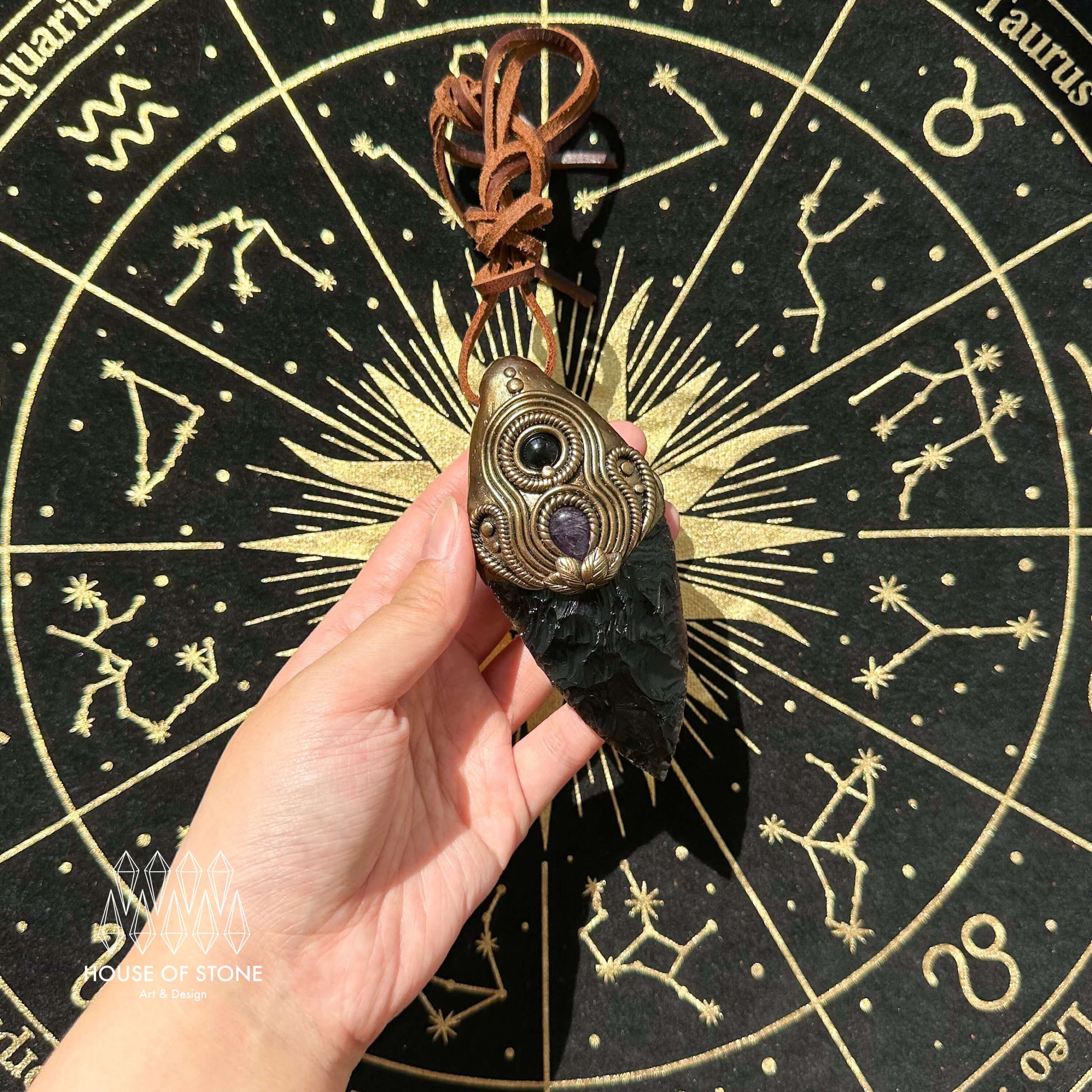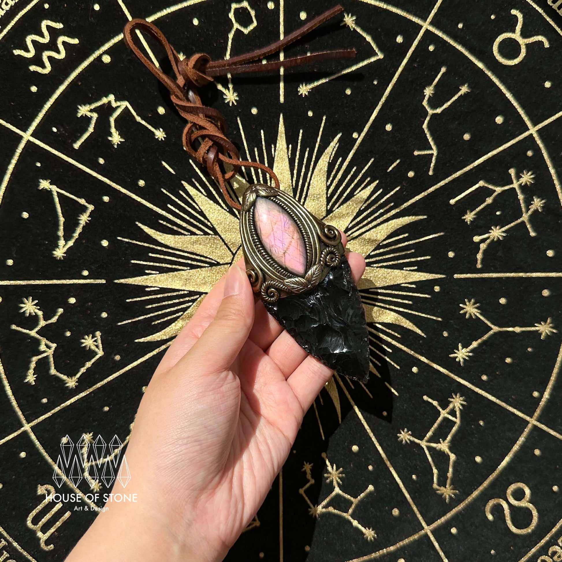 Natural Handmade Black Obsidian Pendant Necklace/Magic Crystal Double-sided Pendant/Labradorite Amethyst Jewelry/Chakra/Altar Tool