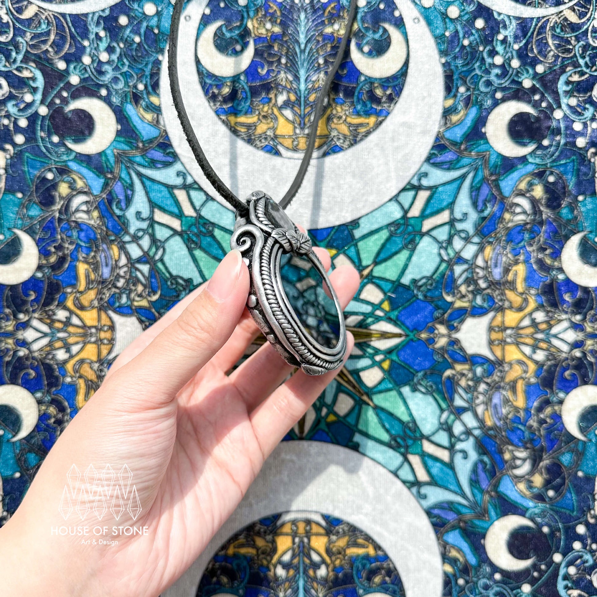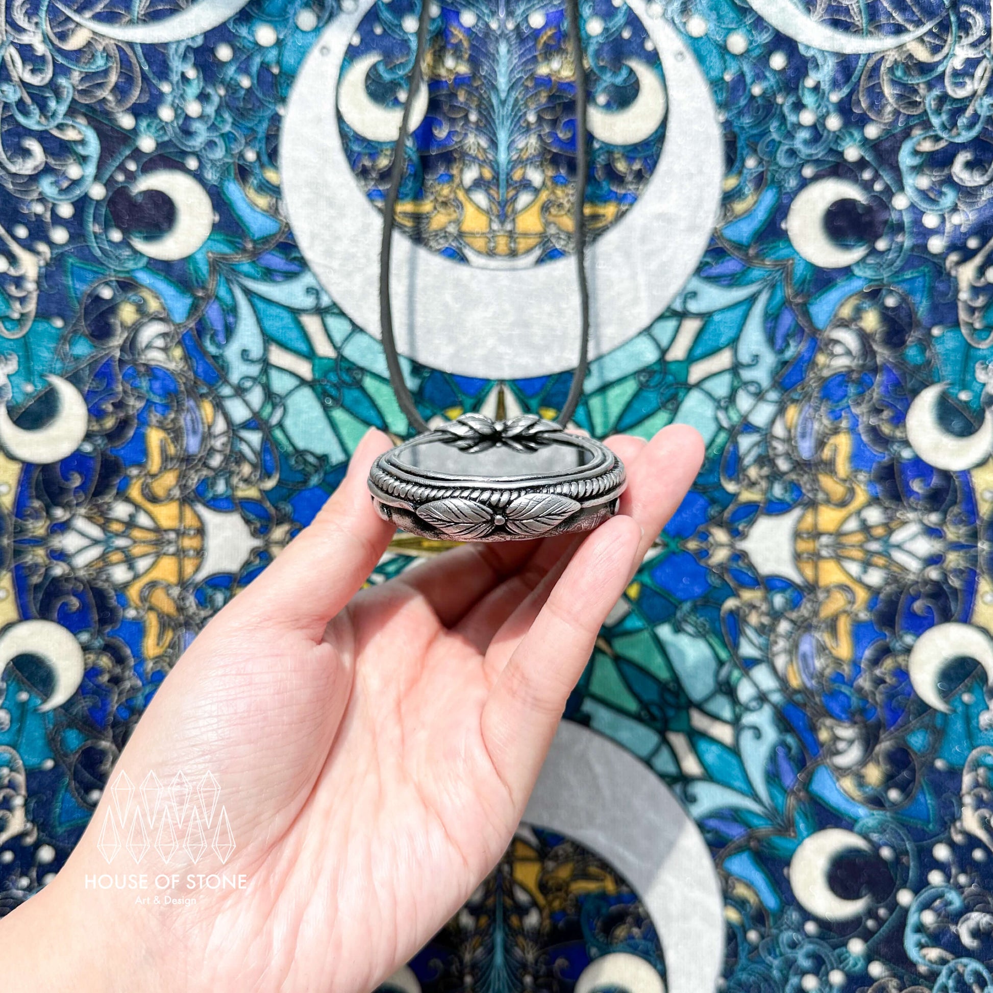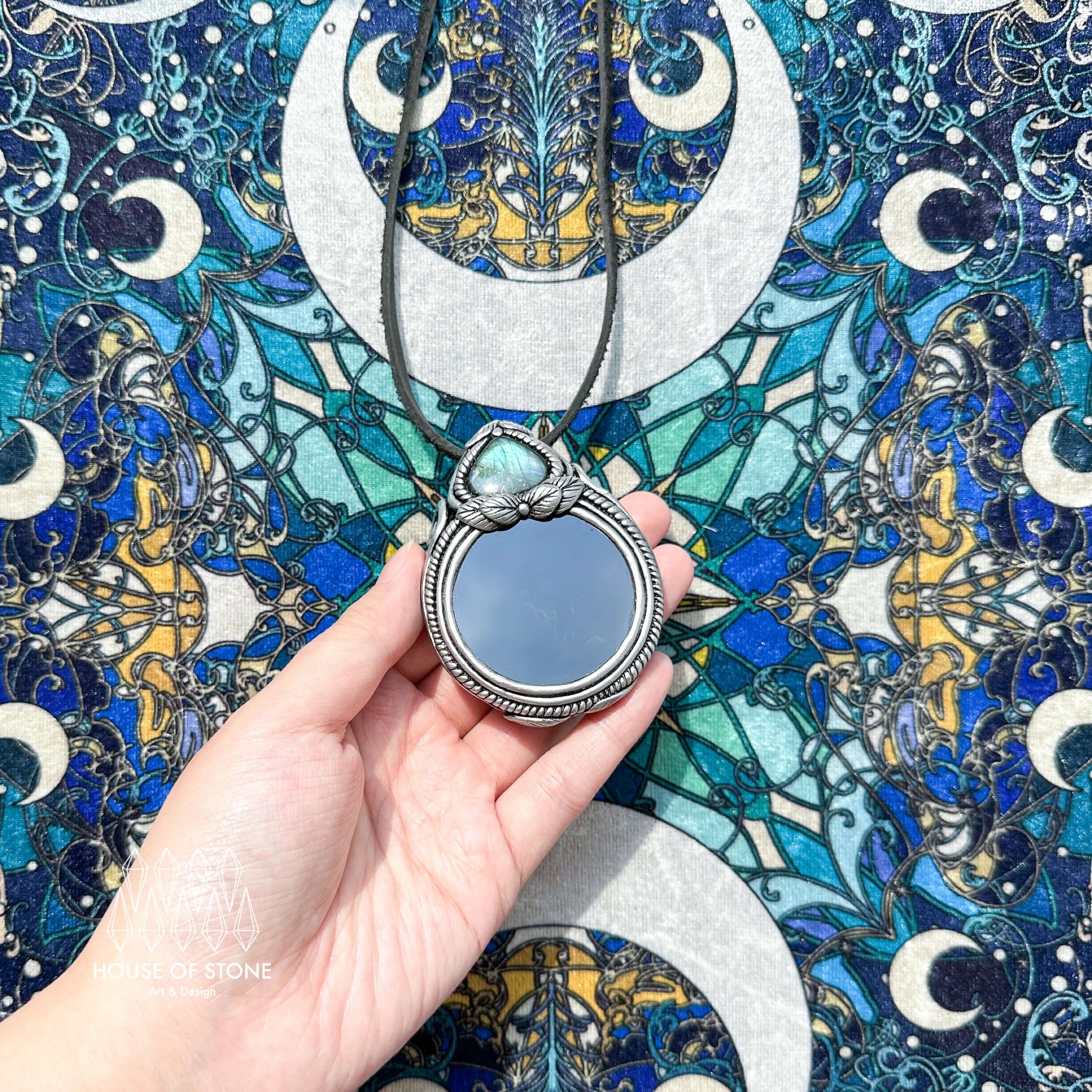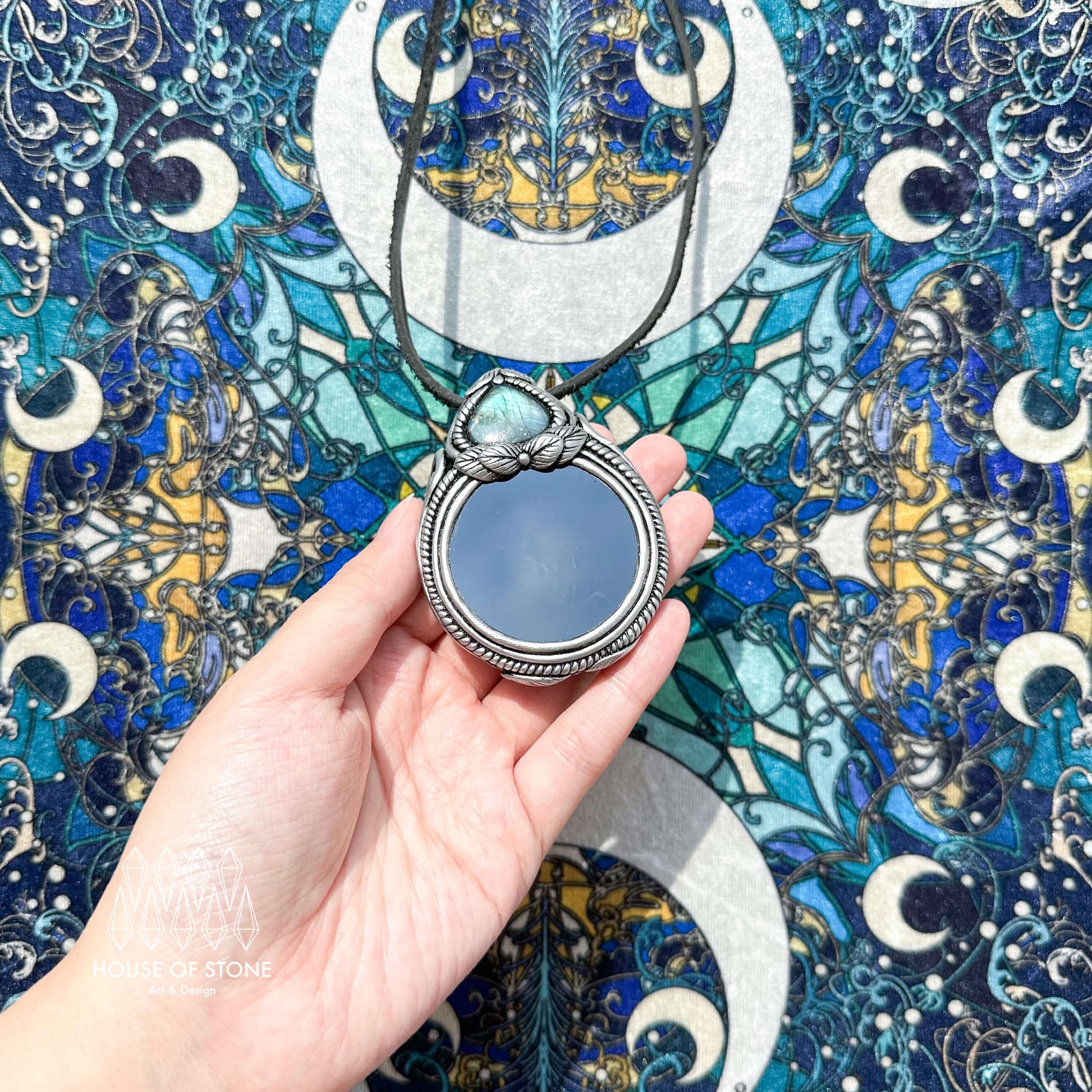 Natural Handmade Black Obsidian Pendant Necklace/Magic Obsidian Mirror Crystal Pendant/Scrying Mirror Labradorite Jewelry/Chakra/Altar Tool