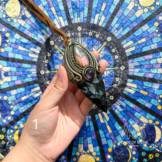 Natural Handmade Black Obsidian Arrowhead Pendant Necklace/Magic Crystal Double-sided Pendant/Labradorite Amethyst Jewelry/Chakra/Altar Tool