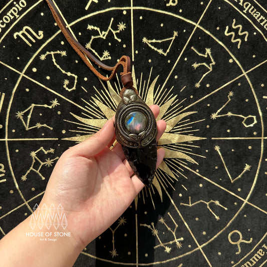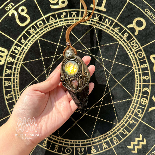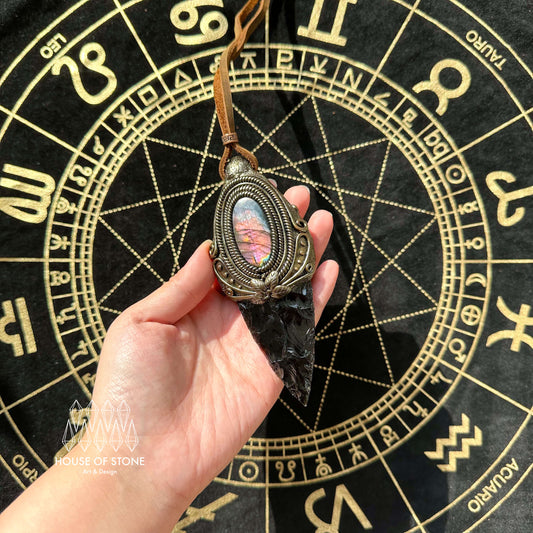 Natural Handmade Black Obsidian Arrowhead Pendant Necklace/Magic Crystal Double-sided Pendant/Labradorite Jewelry/Chakra Healing/Altar Tool