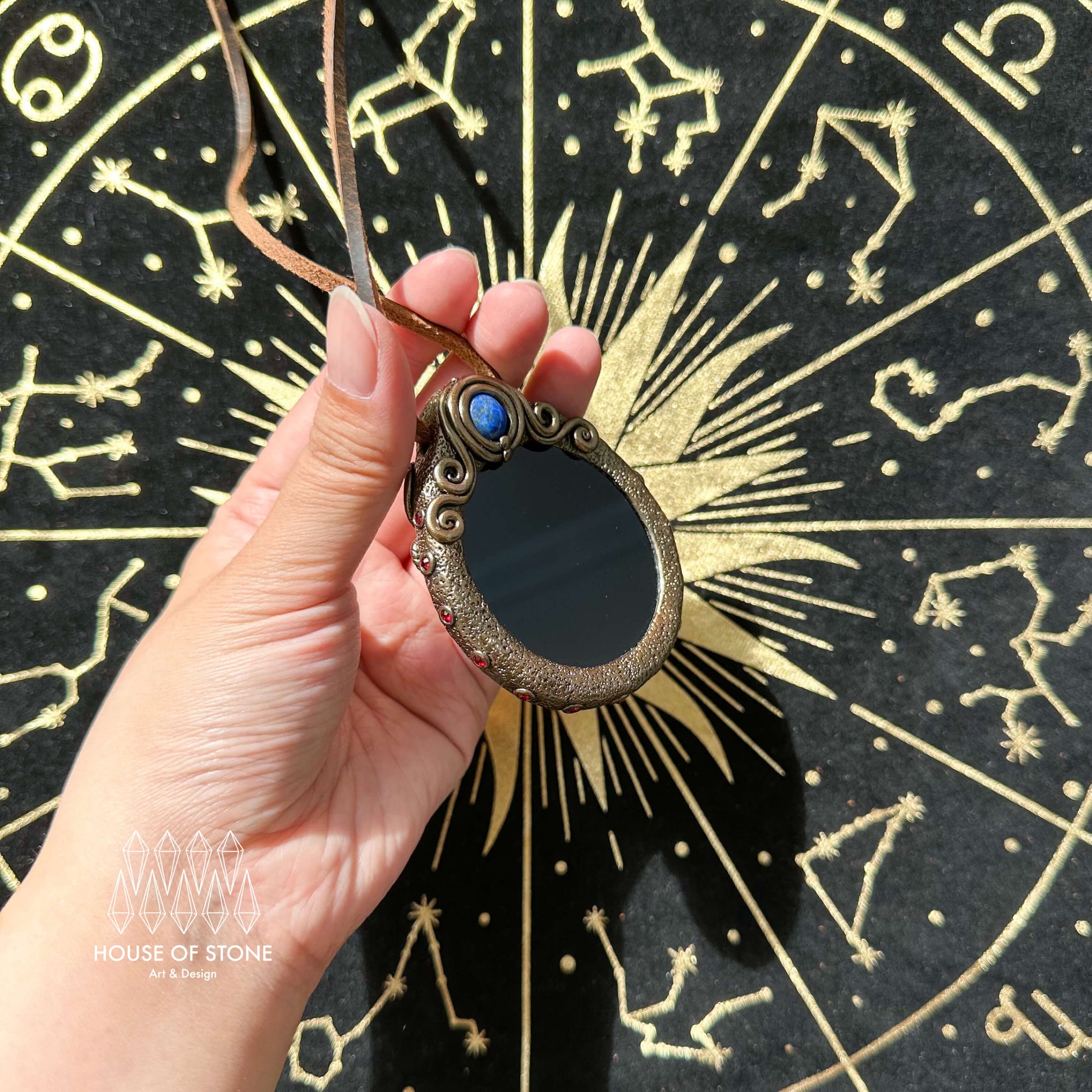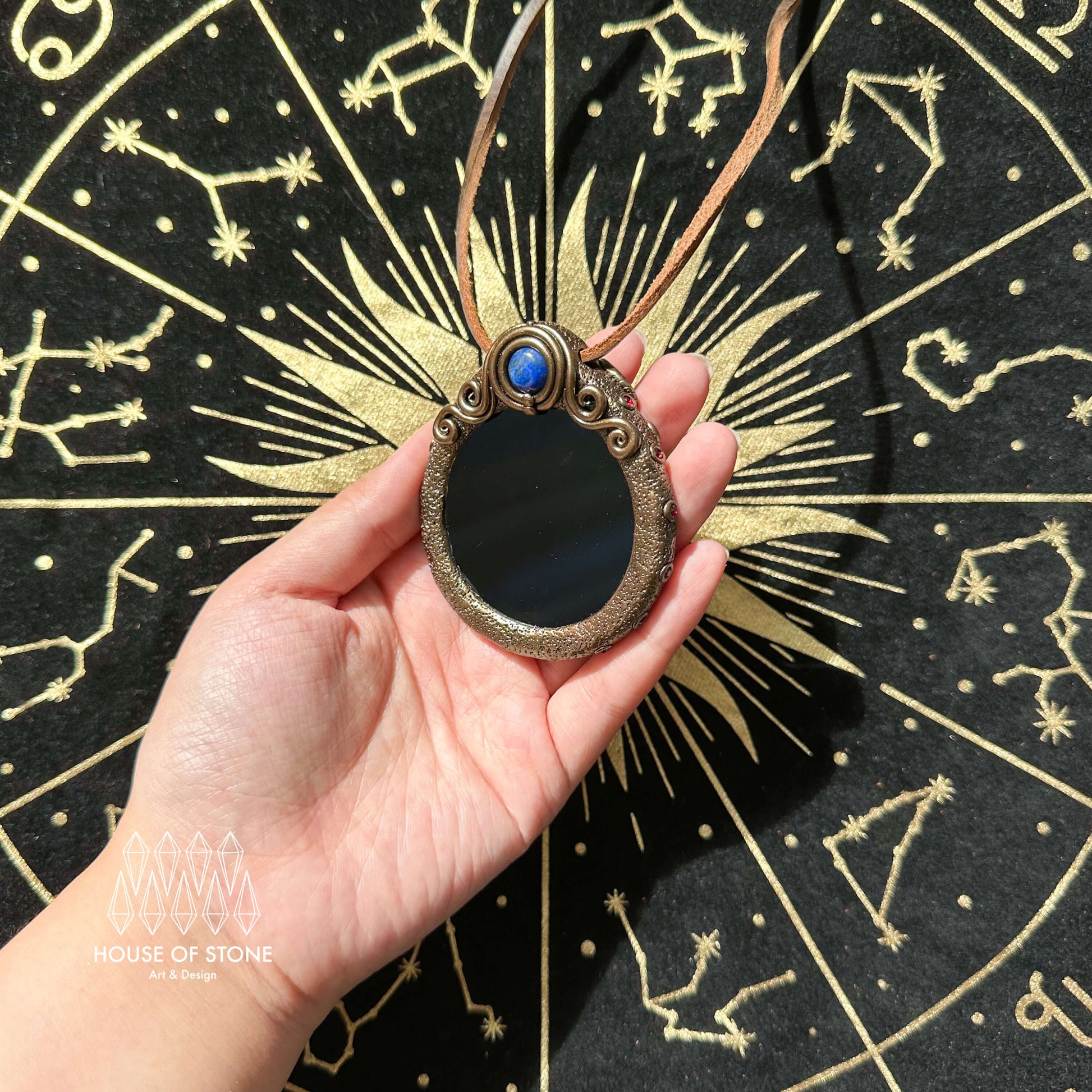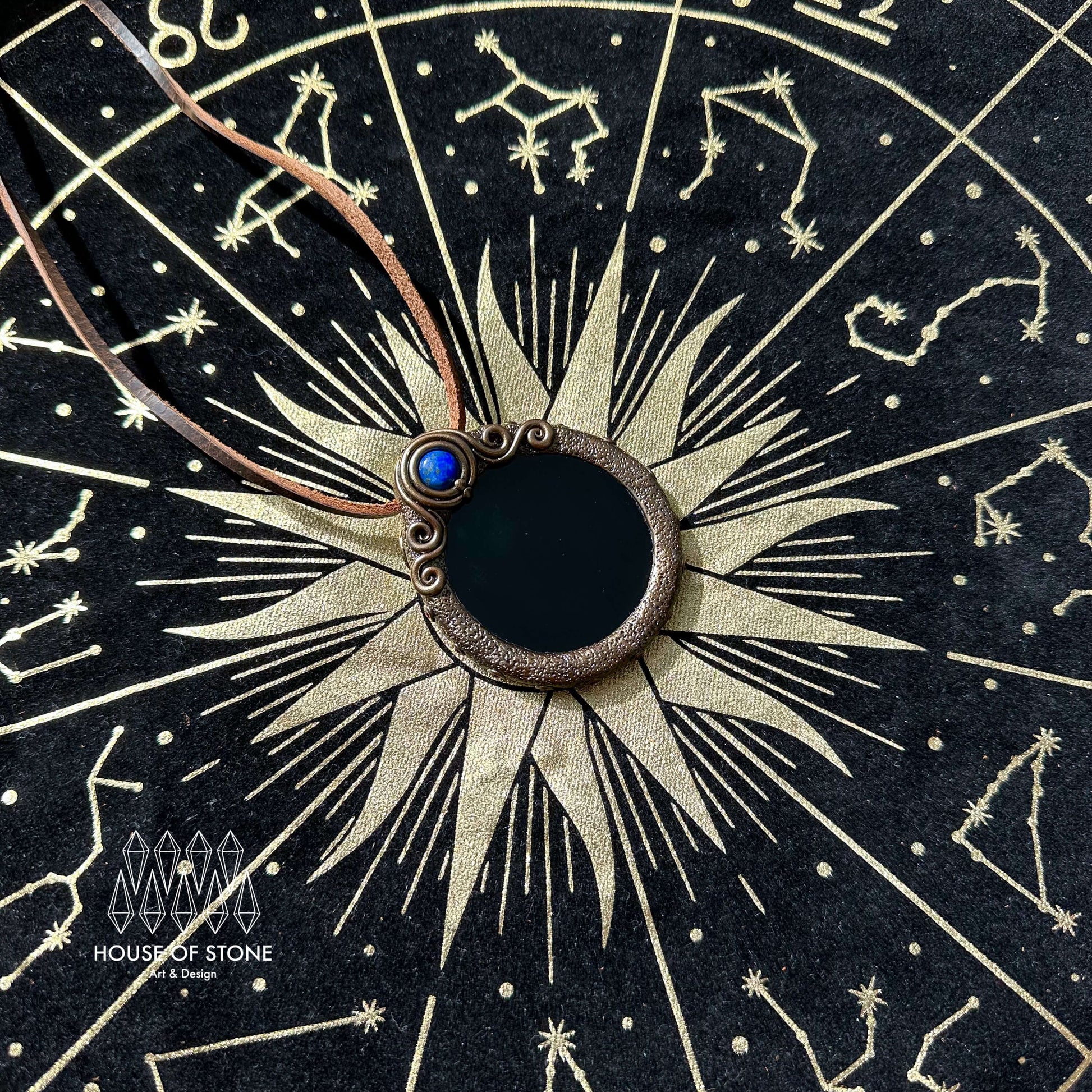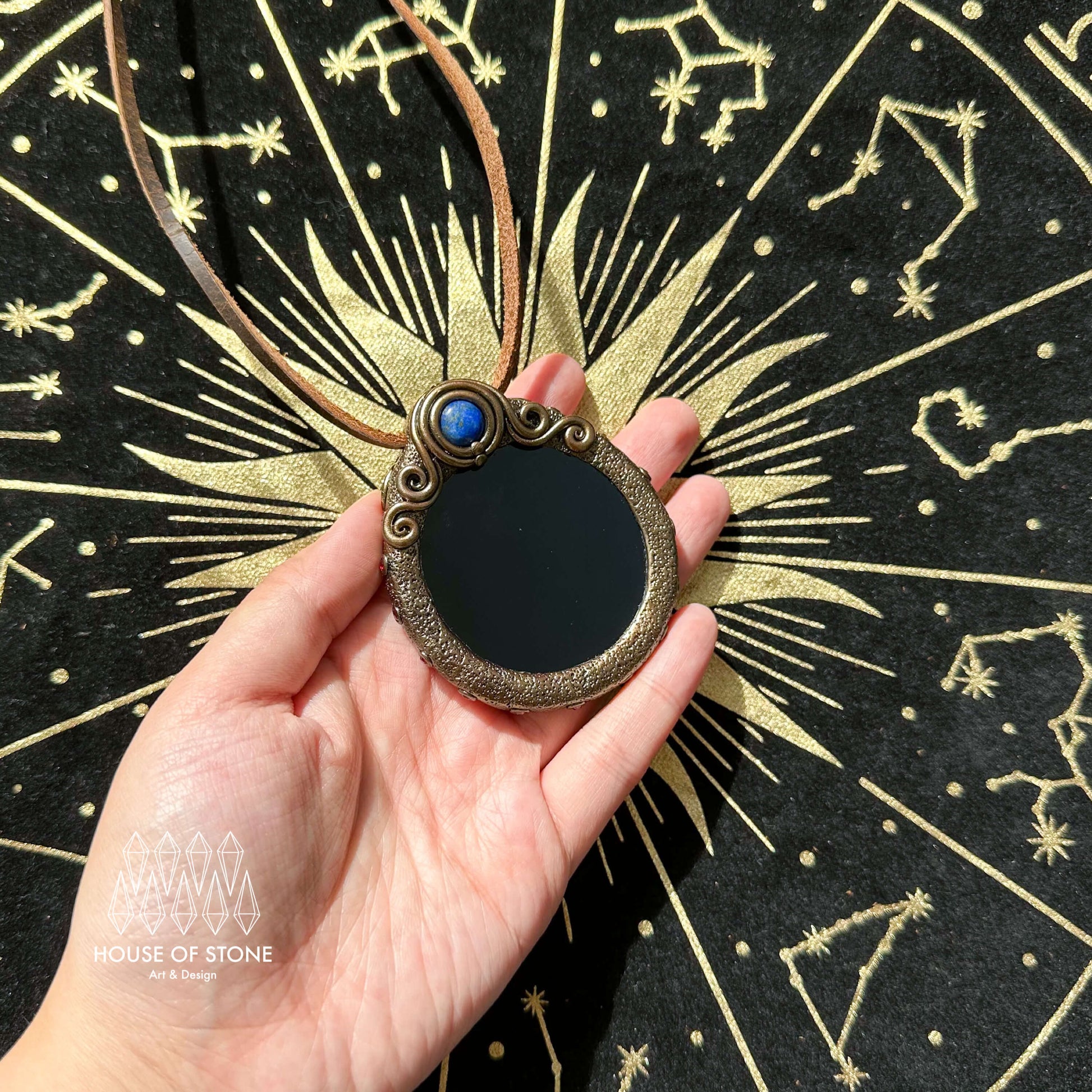 Natural Handmade Black Obsidian Pendant Necklace/Magic Obsidian Mirror Crystal Pendant/Scrying Mirror Tigers Eye Jasper Jewelry/Altar Tool