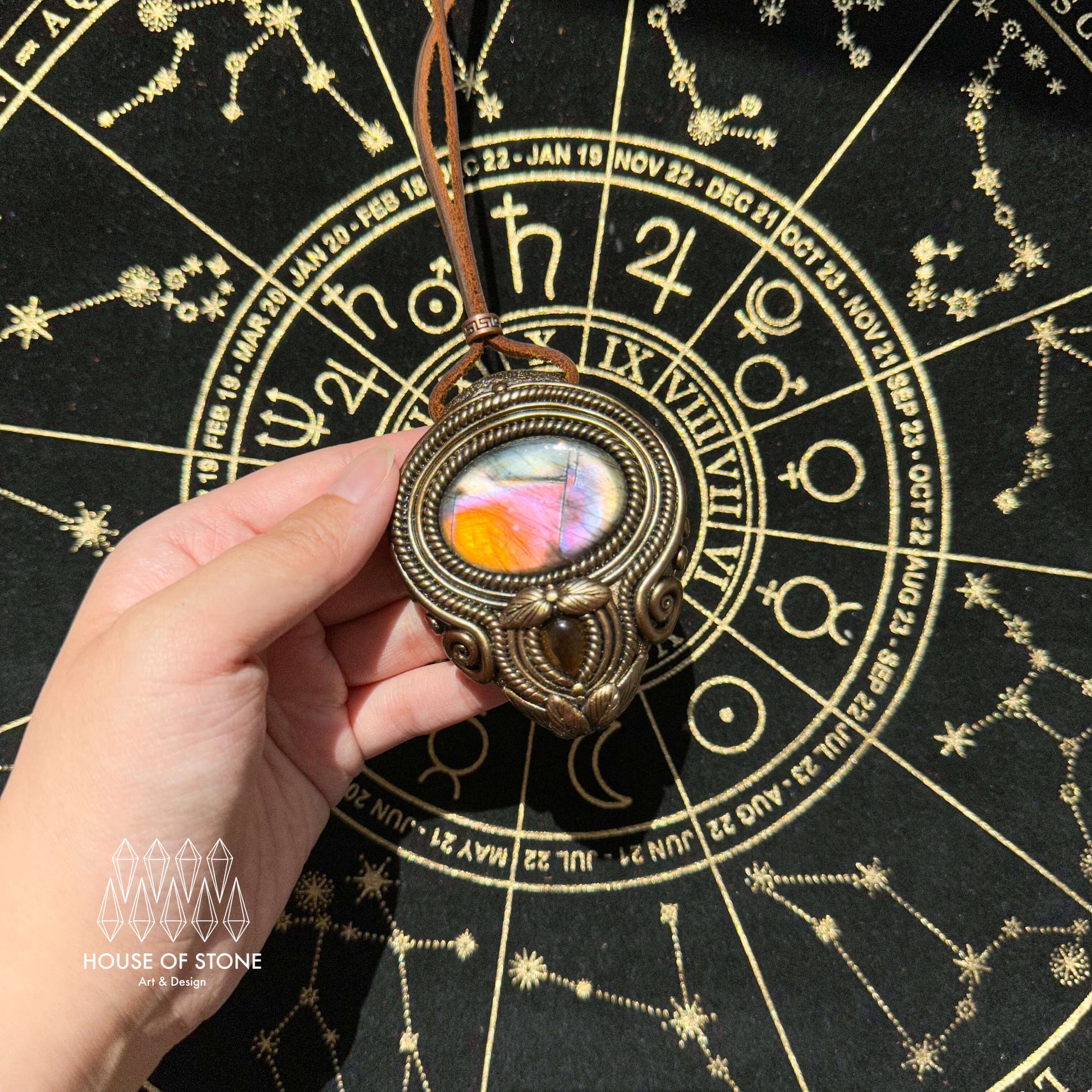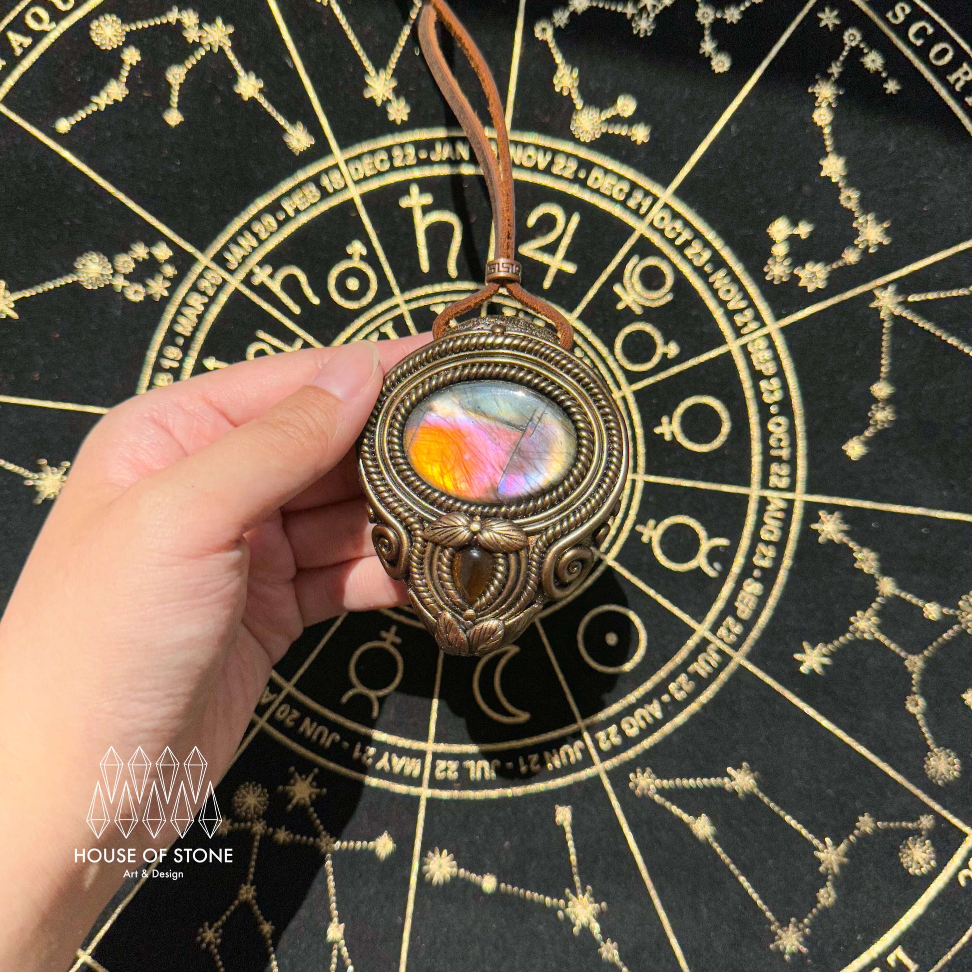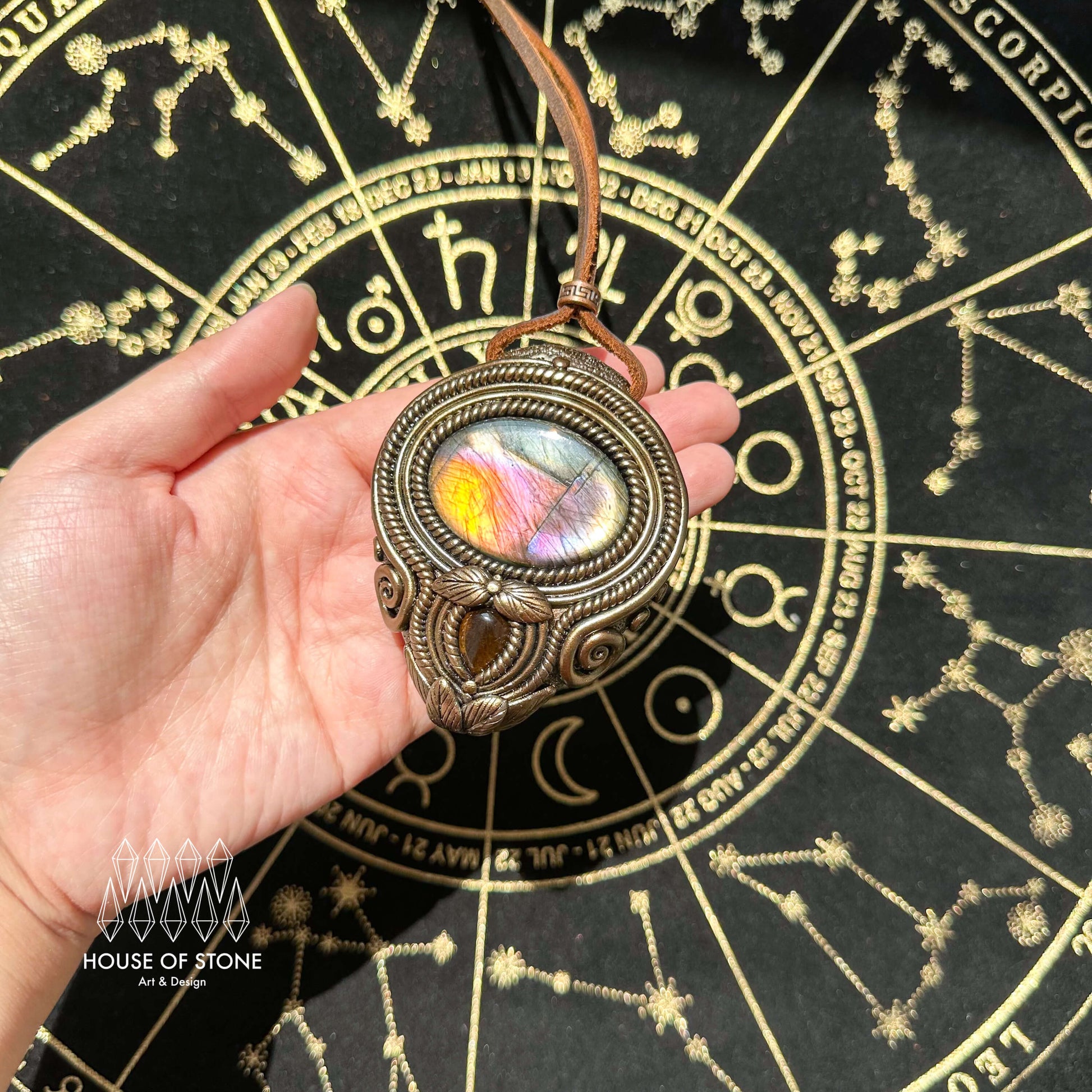 Natural Handmade Labradorite Pendant Necklace/Magic Labradorite Crystal Double-sided Pendant/Tigers Eye Jasper Jewelry/Chakra/Altar Tool