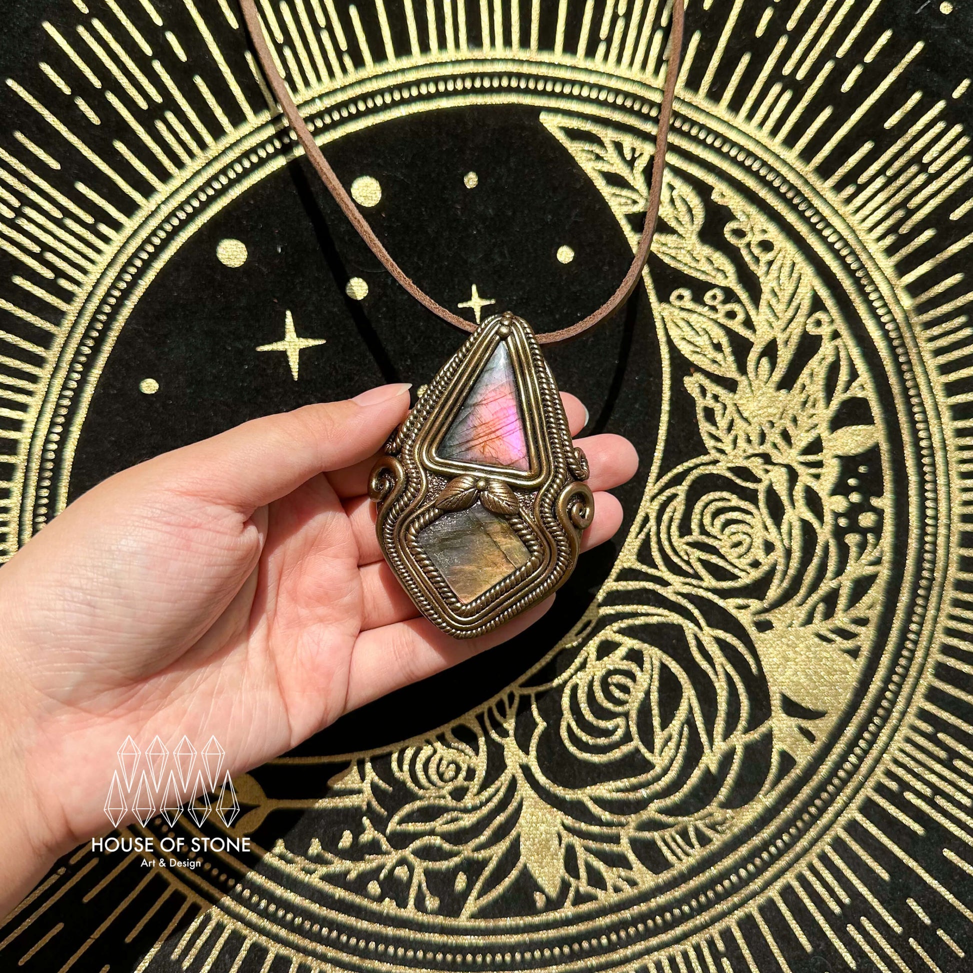 Natural Handmade Labradorite Pendant Necklace/Magic Quartz Crystal Double-sided Pendant/Labradorite Jewelry/Chakra/Altar Tool