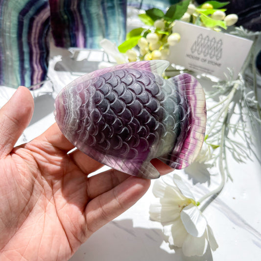 Natural Rainbow Fluorite Fish/Hand Carved Fish/Fluorite Crystal Fish