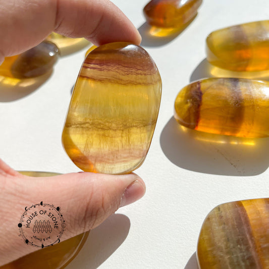 Yellow Fluorite Palm Stone/Yellow Rainbow Fluorite Big Pocket Stone/Natural Yellow Fluorite Crystal Palm Worry Stone