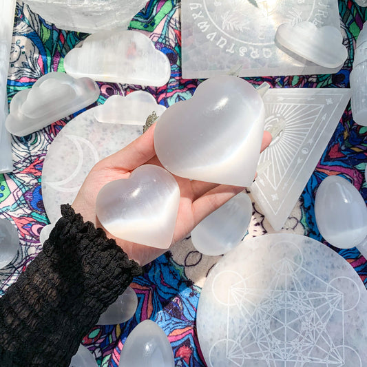 Natural Selenite Crystal Heart/Selenite Crystal Tumbled Stone/Cleanse Selenite Heart