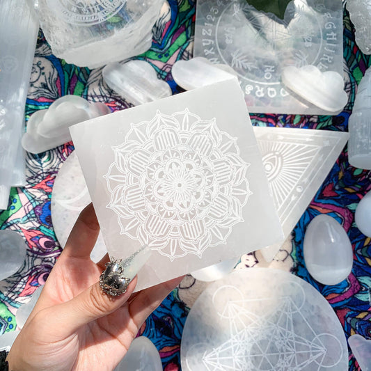 Selenite Charging Plate/Cleanse Crystals Plate/Selenite Etched Plate