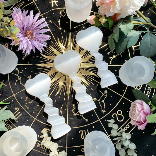 Natural Selenite Spiral Heart Tower/Selenite Crystal Spiral Heart Tower