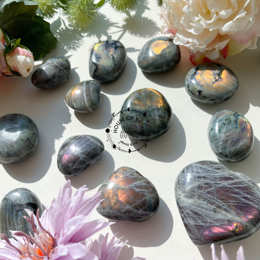 Purple Labradorite Palm Stone/Rainbow Flash Labradorite Heart/Natural Purple Labradorite Pocket Stone