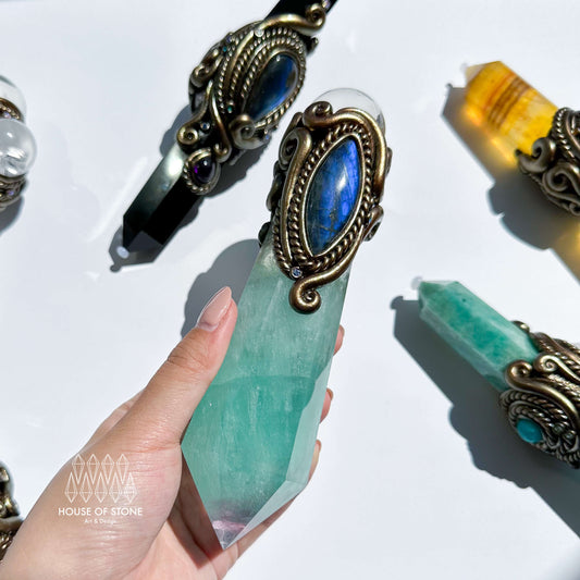 Natural Handmade Crystal Quartz Wand/Magic Crystal Wand/Rainbow Fluorite Clear Quartz Labradorite/Chakra Healing/Manifest Tool/Altar Tool
