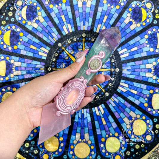Natural Handmade Crystal Quartz Wand/Magic Crystal Wand/Rose Quartz Fluorite Rhodochrosite/Chakra Healing/Manifest Tool/Altar Tool