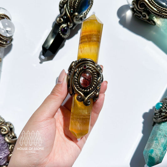 Natural Handmade Crystal Quartz Wand/Magic Crystal Wand/Yellow Fluorite Garden Quartz/Chakra Healing/Manifest Tool/Altar Tool