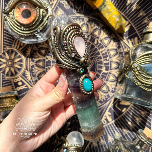 Natural Handmade Crystal Quartz Wand/Magic Crystal Wand/Rainbow Fluorite Clear Quartz Rose Quartz Amazonite/Chakra Healing/Manifest Tool/Altar Tool