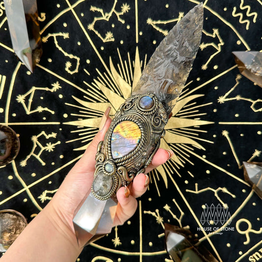 Natural Handmade Crystal Quartz Wand/Magic Witch Crystal Wand/Moonstone Clear Quartz Labradorite Wand/Chakra Healing/Manifest Altar Tool