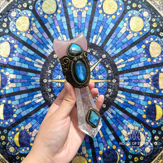 Natural Handmade Crystal Quartz Wand/Magic Witch Crystal Wand/Moonstone Rose Quartz Labradorite Wand/Chakra Healing/Manifest Altar Tool