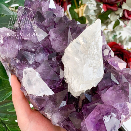 Natural Large Amethyst Geode with Calcite/Amethyst Crystal Cluster/Uruguay Amethyst Standing Cluster/Crown Chakra/AAA
