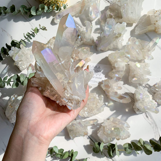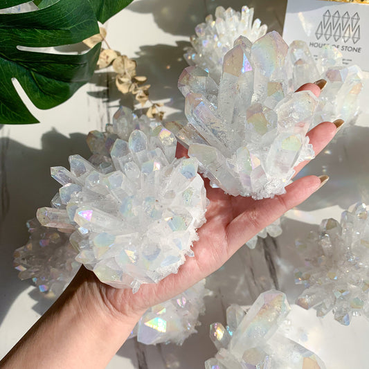Angel Aura Quartz Cluster/Raw Rainbow Aura Crystal Quartz Cluster/Rough Aura Quartz Cluster/Chakra Healing/AAA
