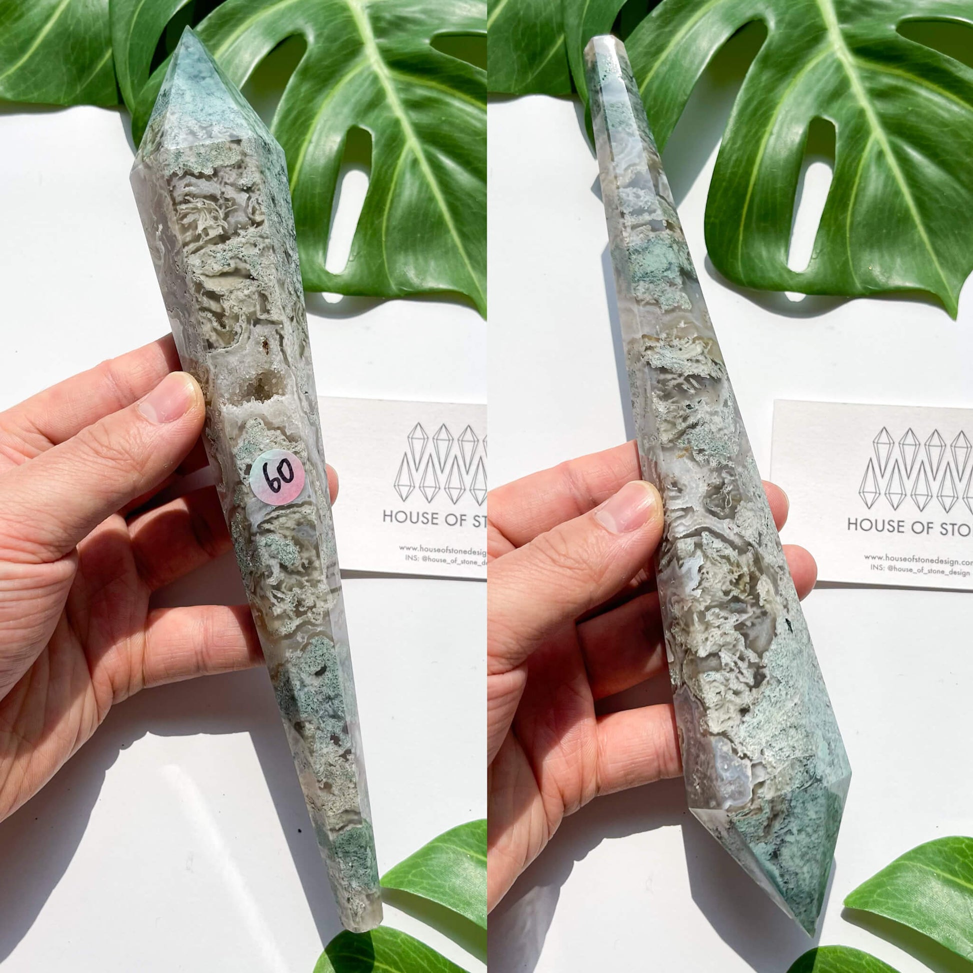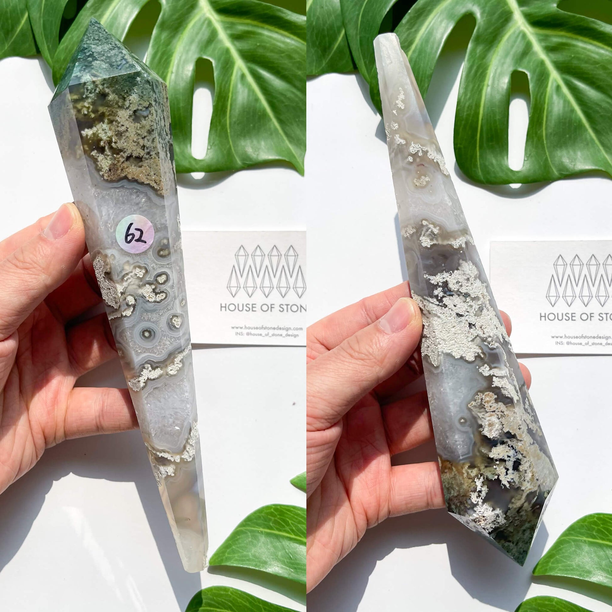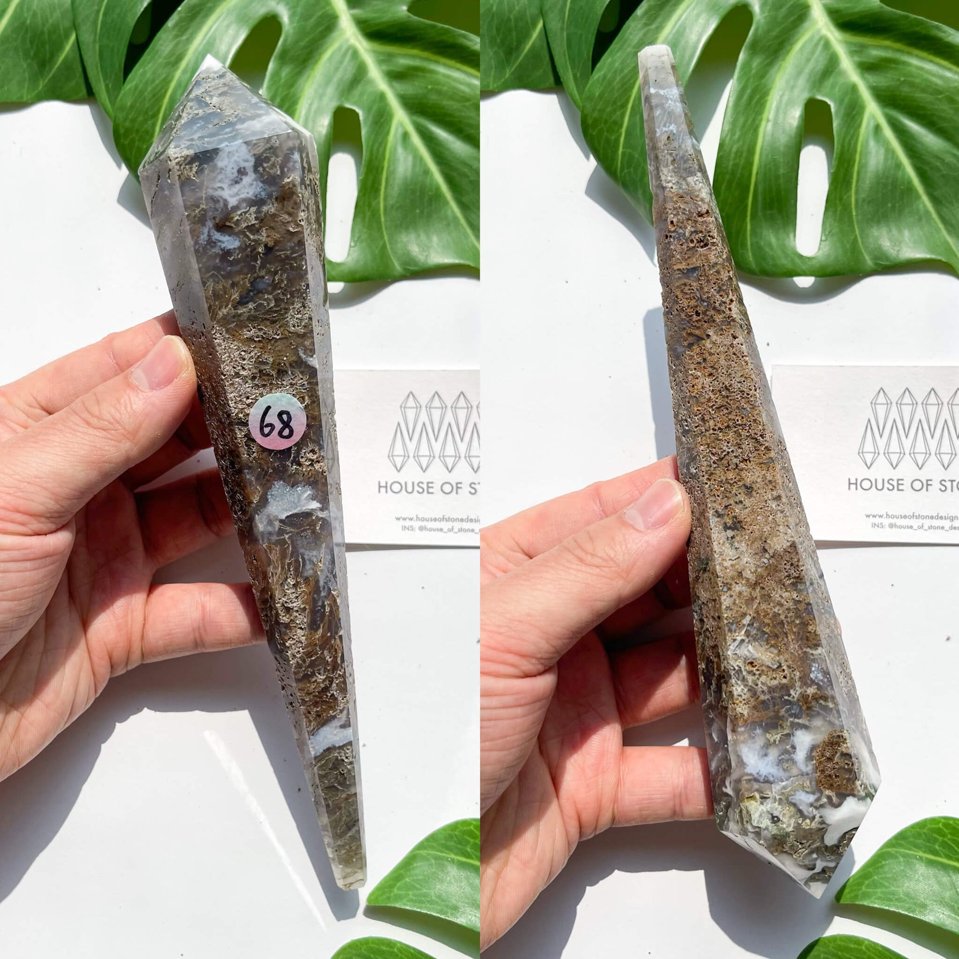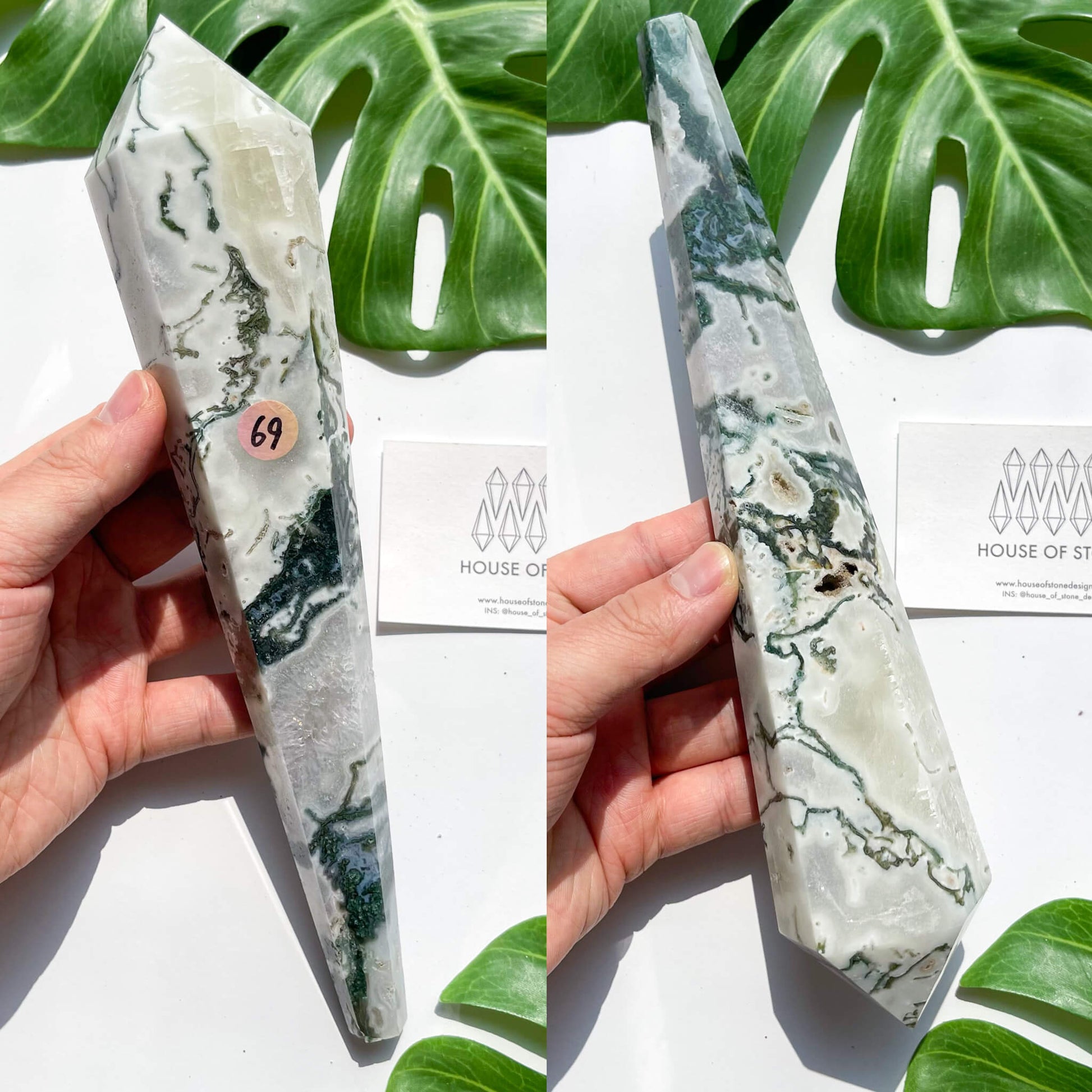 Natural Moss Agate Wand/Druzy Moss Agate Crystal Point Wand/Moss Agate Crystal Handle/Moss Agate Stem/Wedding Bouquet Handle/Heart Chakra Healing/AAA