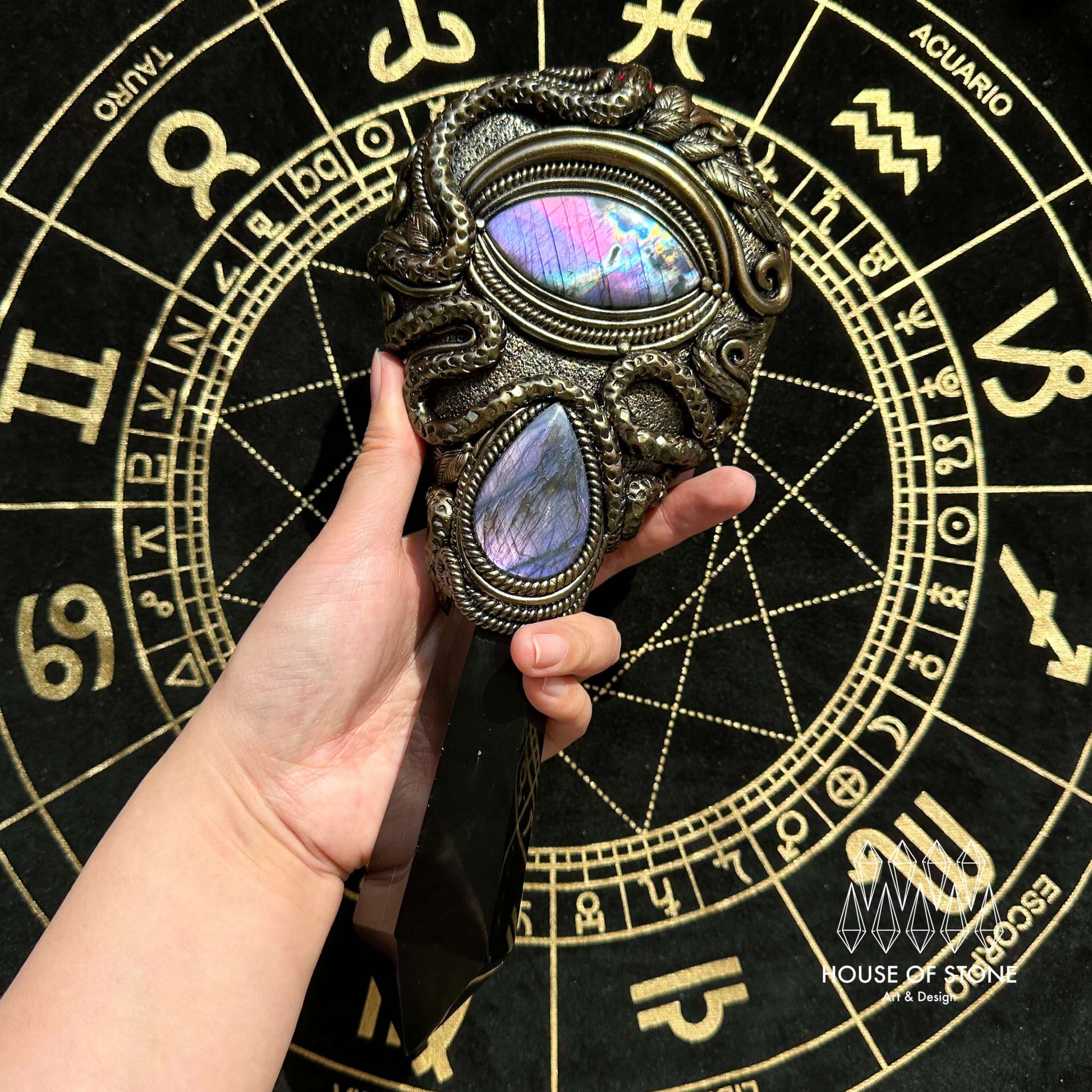 Handmade Natural Black Obsidian Mirror/Magic Obsidian Witch Wand/Crystal Quartz Wand/Scrying Mirror Wand/Root Chakra/Manifest Altar Tool