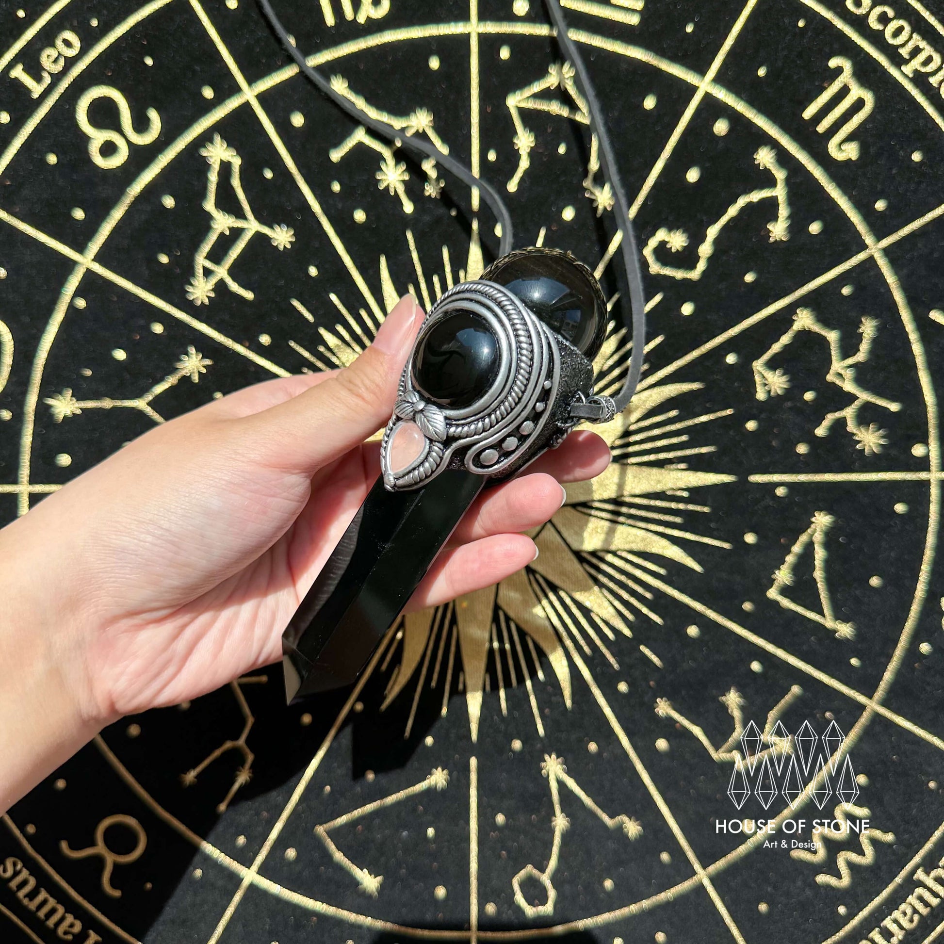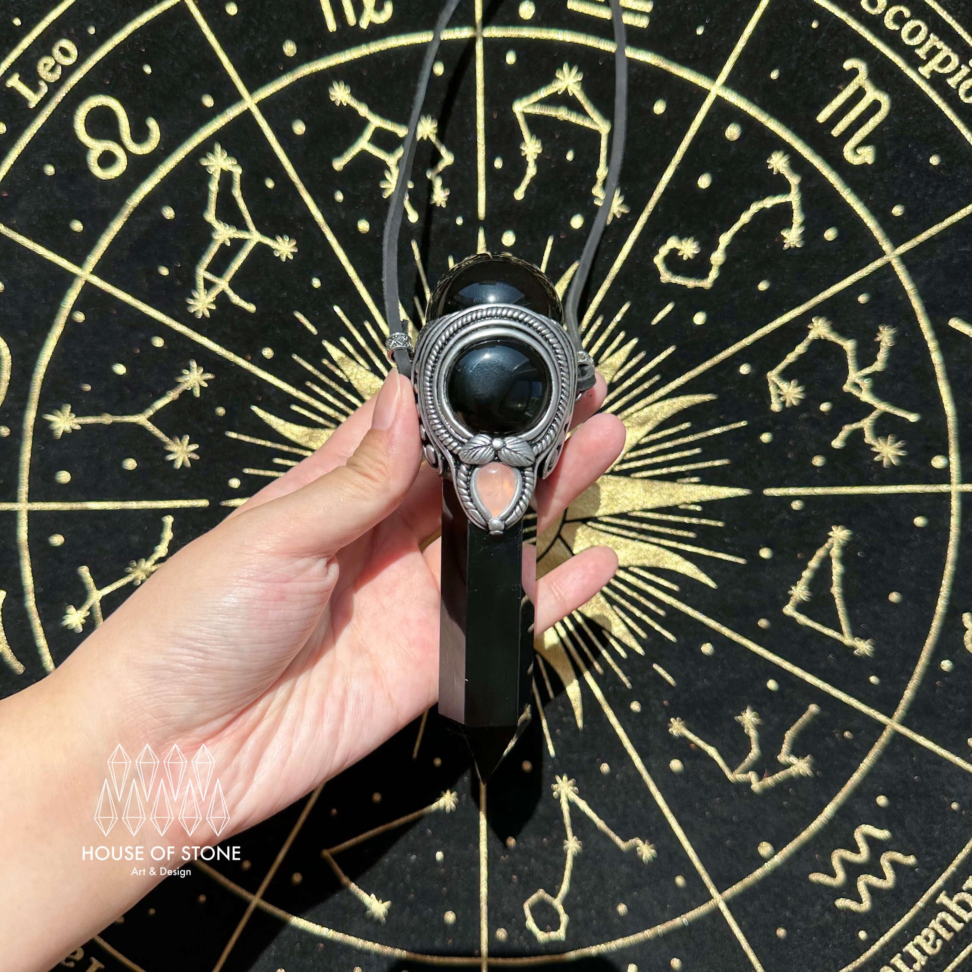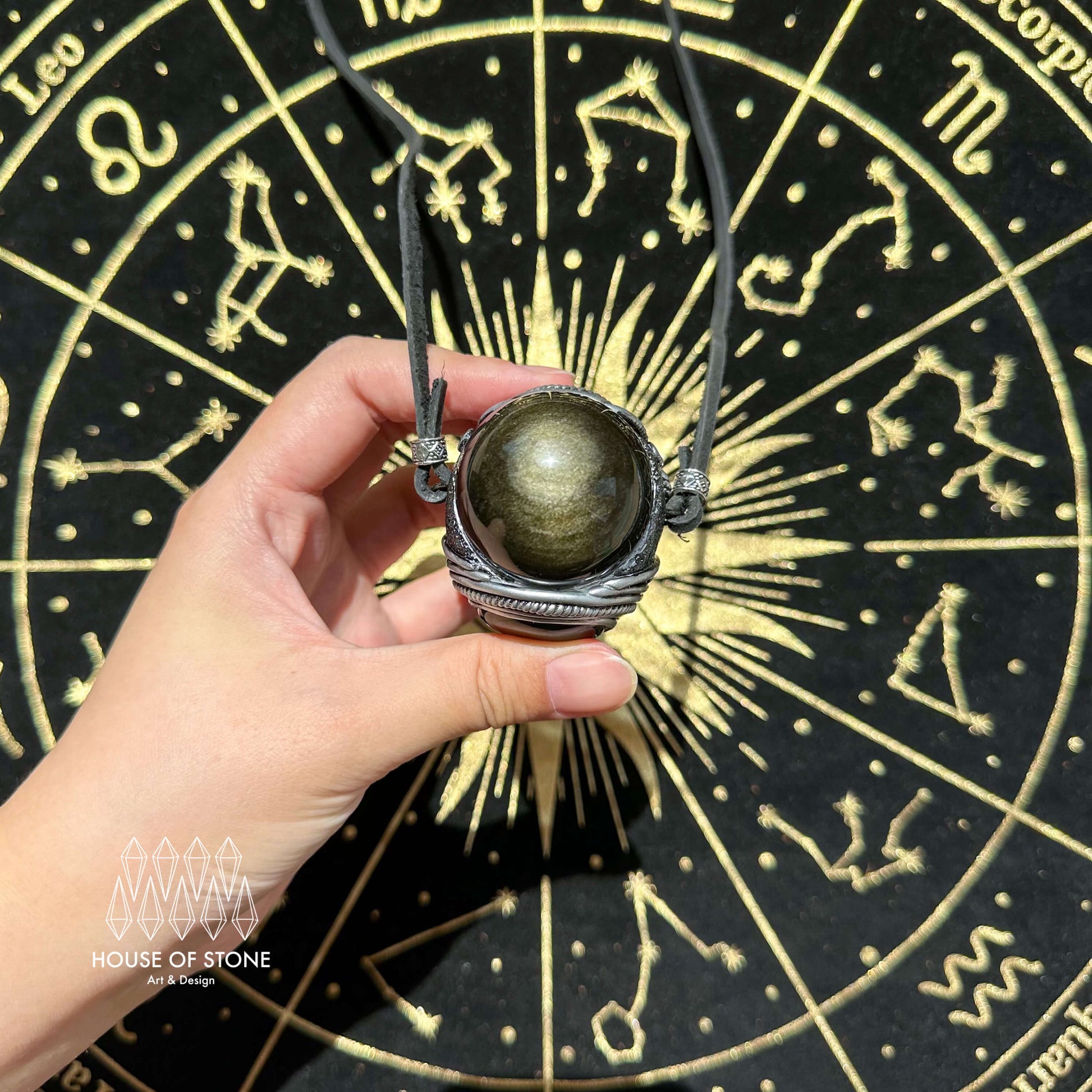 Natural Handmade Black Obsidian Pendant Necklace/Magic Gold Sheen Obsidian Crystal Pendant/Rose Quartz Jewelry/Chakra/Altar Tool
