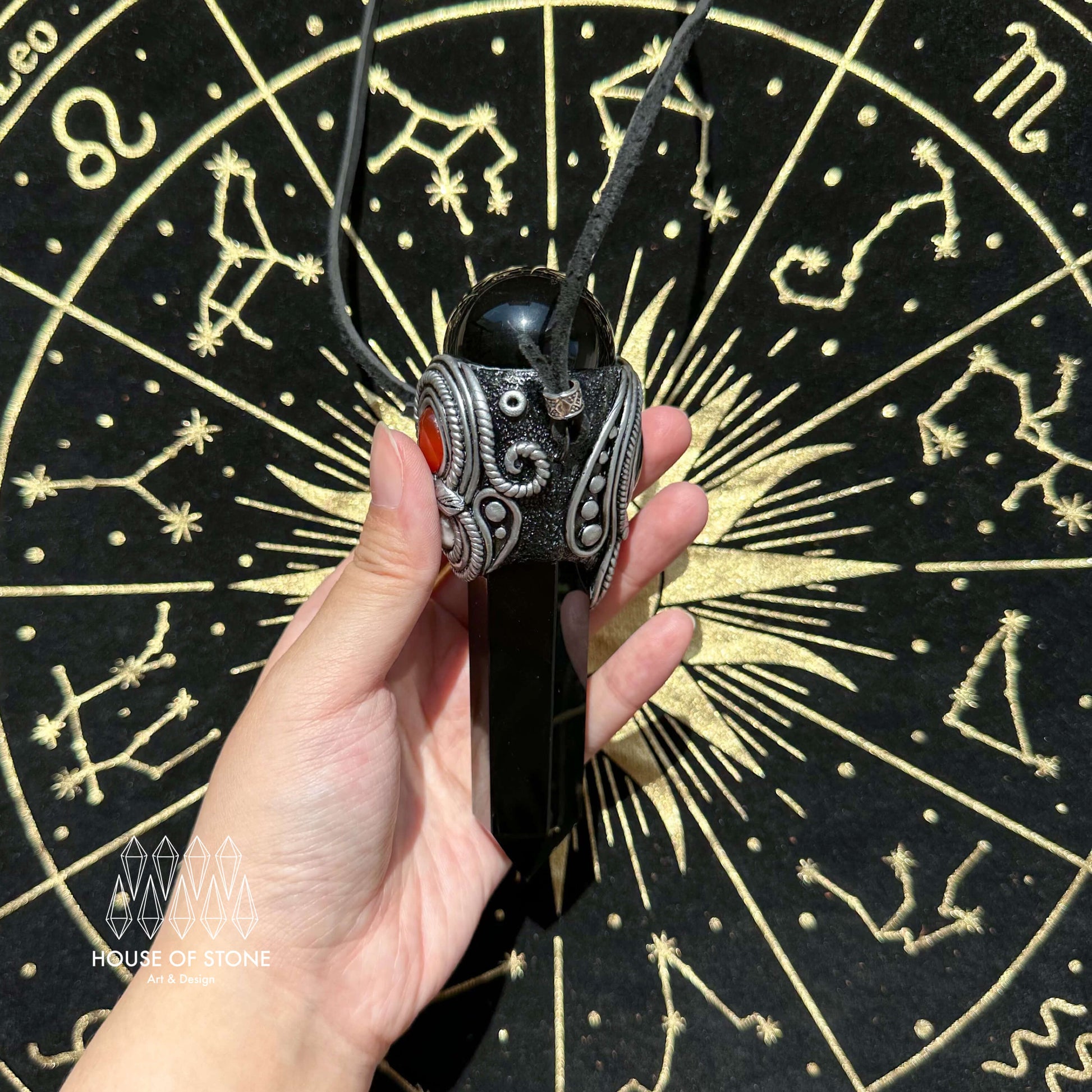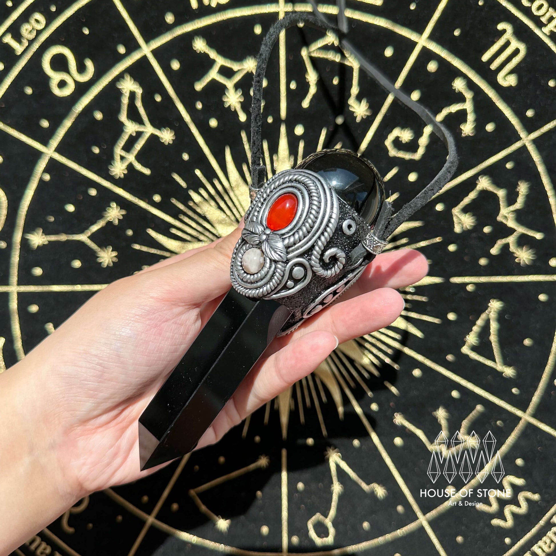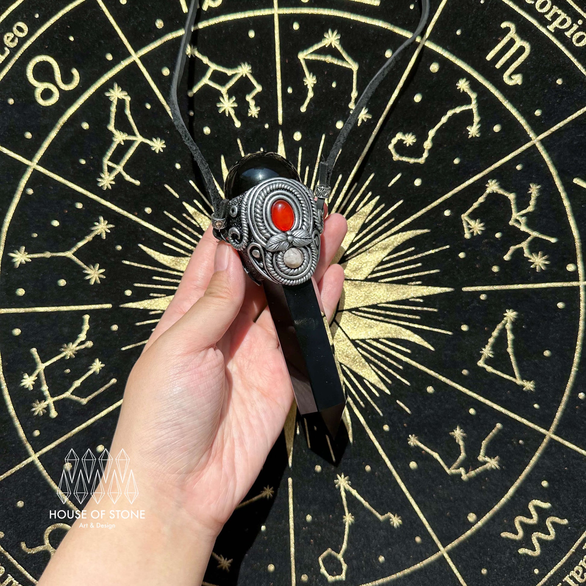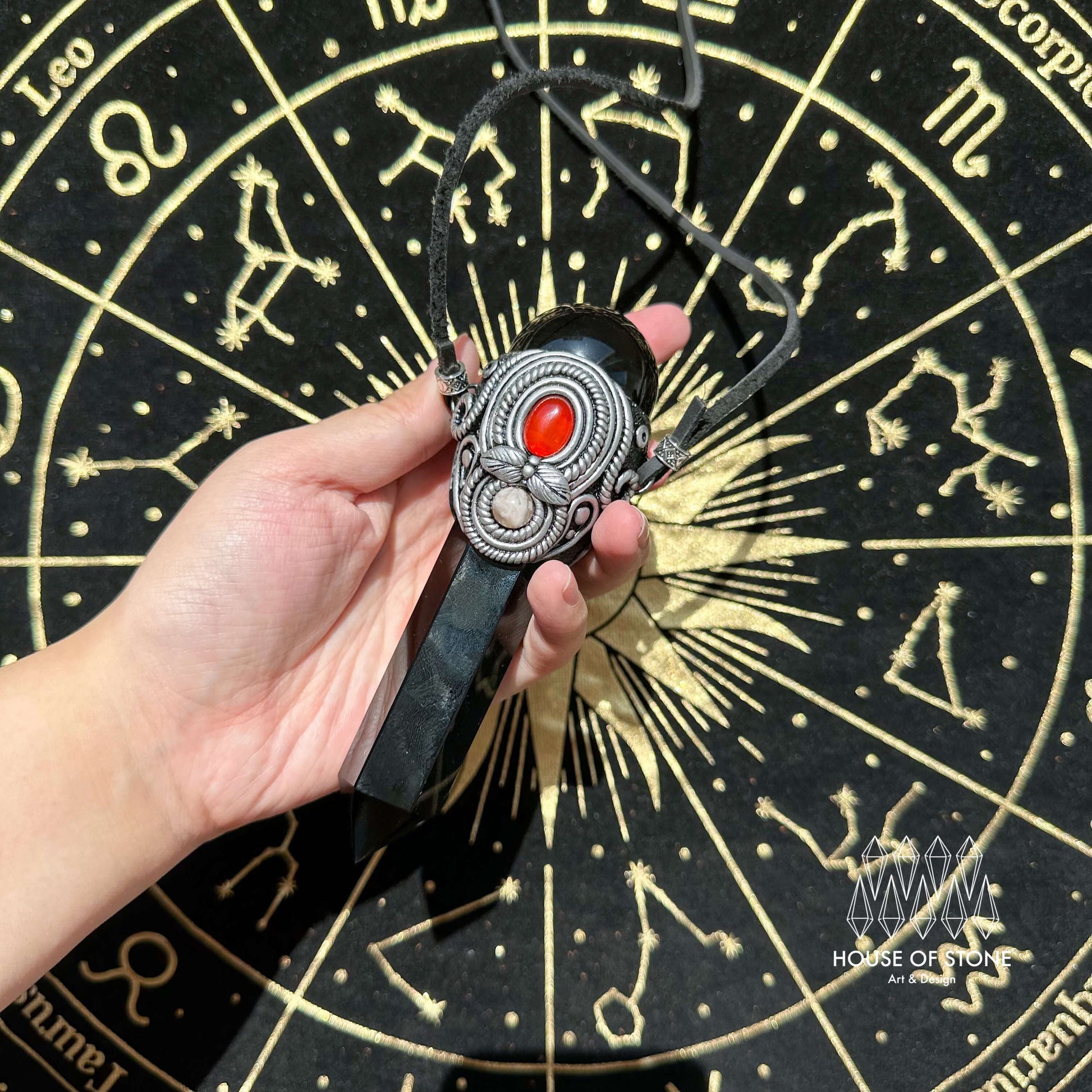 Natural Handmade Black Obsidian Pendant Necklace/Magic Gold Sheen Obsidian Crystal Pendant/Rose Quartz Jewelry/Chakra/Altar Tool