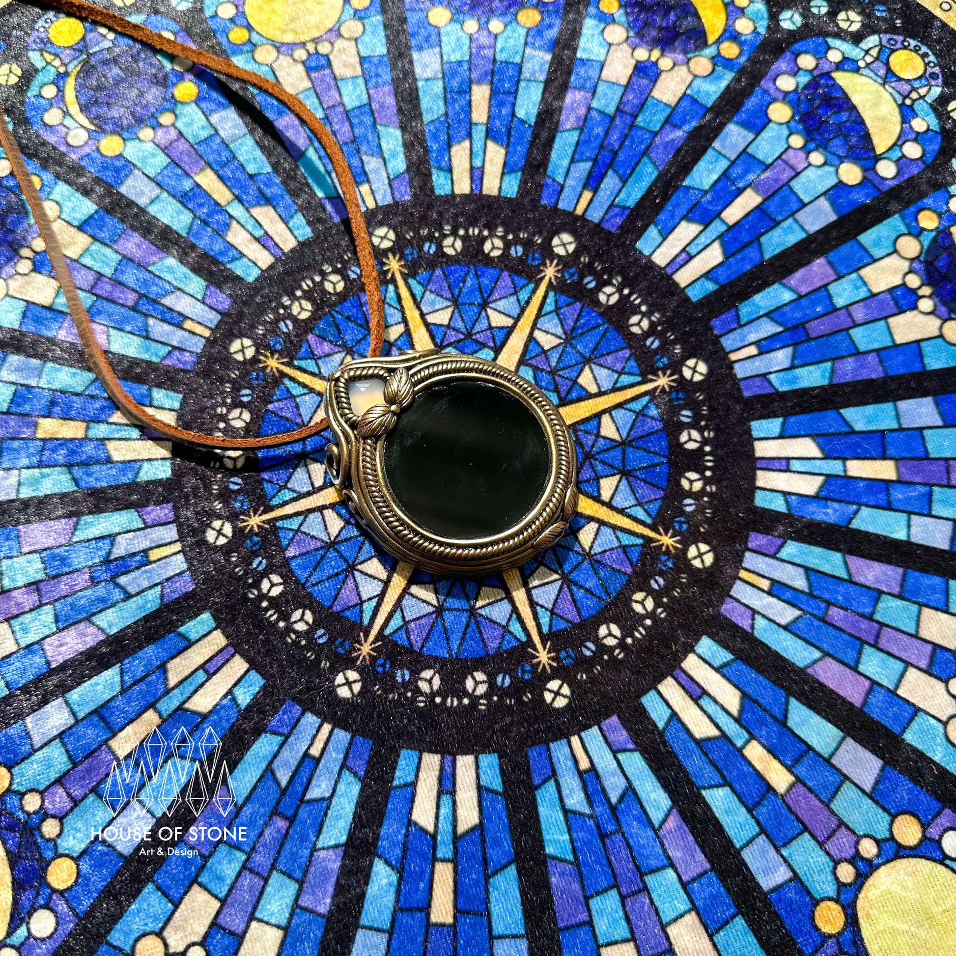 Natural Handmade Black Obsidian Pendant Necklace/Magic Obsidian Mirror Crystal Pendant/Scrying Mirror Labradorite Jewelry/Chakra/Altar Tool