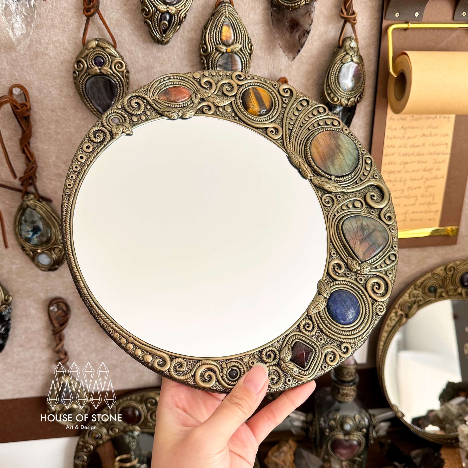 Natural Handmade Crystal Mirror/Magic Crystal Witch Mirror/Labradorite Mirror/Crystal Quartz Mirror/Chakra Healing/Manifest Altar Tool