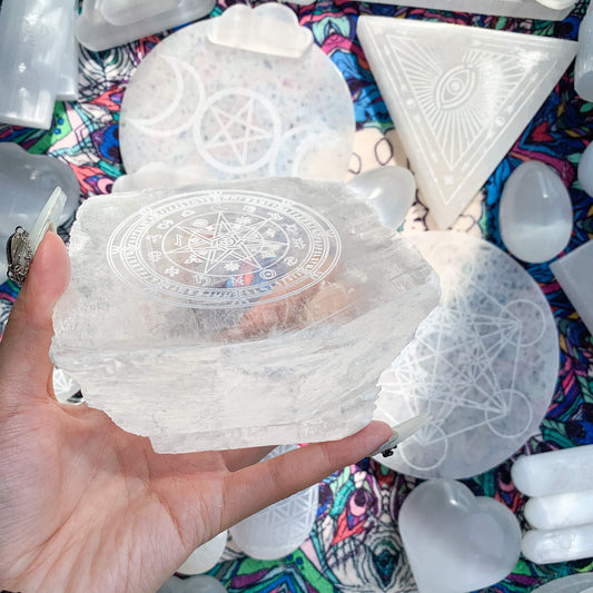 Natural Clear Selenite Crystal Stand Piece/Etched Selenite Piece/Large Selenite Crystal Slab