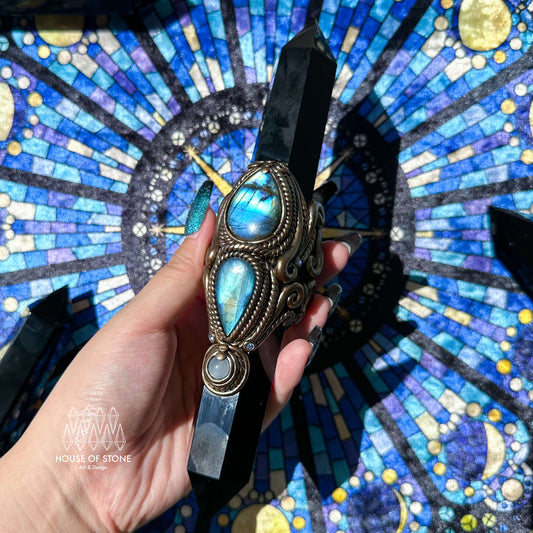 Natural Handmade Crystal Quartz Wand/Magic Crystal Quartz Wand/Black Obsidian Labradorite/Chakra Healing/Manifest Tool/Altar Tool