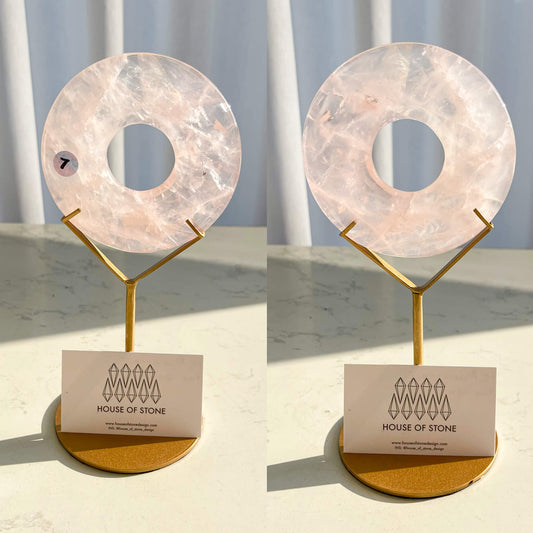 Natural Large Clear Quartz Donut with Stand/Rose Quartz Crystal Life Circle/Hand Carved Crystal Life Circle/Crystal Donut/Chakra Healing