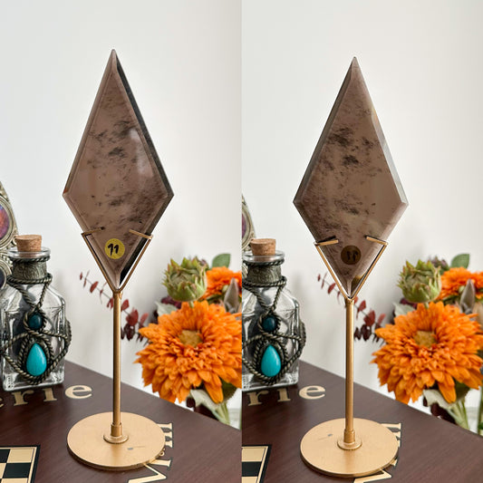 Natural Large Smoky Quartz Diamond with Stand/Smoky Quartz Crystal Slab/Hand Carved Crystal Diamond/Chakra Healing Tools/AAA