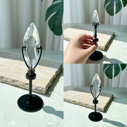 Natural Marquise Cut Clear Quartz with Stand/High Quality Faceted Cut Smoky Quartz Crystal/Hand Carved Sided Crystal Diamond/Chakra Healing