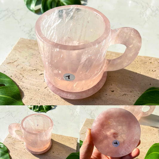 Natural Rose Quartz Cup With Coaster/Hand Carved Rose Quartz Mug/Crystal Cup/High Quality Quartz Tea Cup Set