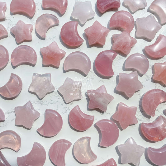 Natural Rose Quartz Star/Small Rose Quartz Moon/Crystal Star Moon Carvings/Rose Quartz Carvings/Heart Chakra Healing/AAA