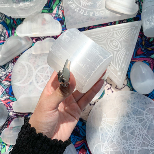 Natural Selenite Candle Holder/Hand Polished Selenite Candle Holder