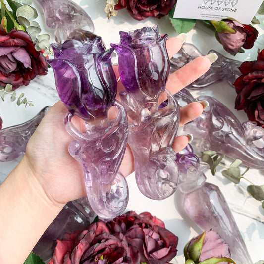 Natural Amethyst Rose Peacock Wand/Amethyst Hand Carved Flower/Natural Amethyst Crystal Wand/Third Eye Chakra