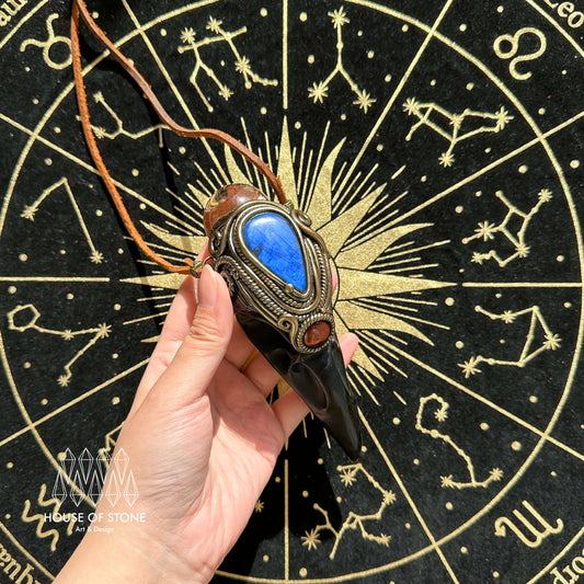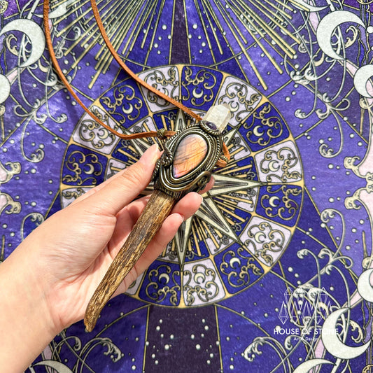 Handmade Natural Crystal Quartz Antler Pendant/Magic Crystal Necklace/Amethyst Labradorite Pendant/Root Chakra/Boho Necklace/Altar Tool