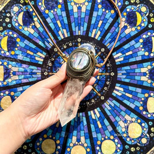 Handmade Natural Clear Quartz Pendant Necklace/Magic Quartz Crystal Protection Pendant/Labradorite Amethyst Jewelry/Crown Chakra/Altar Tool